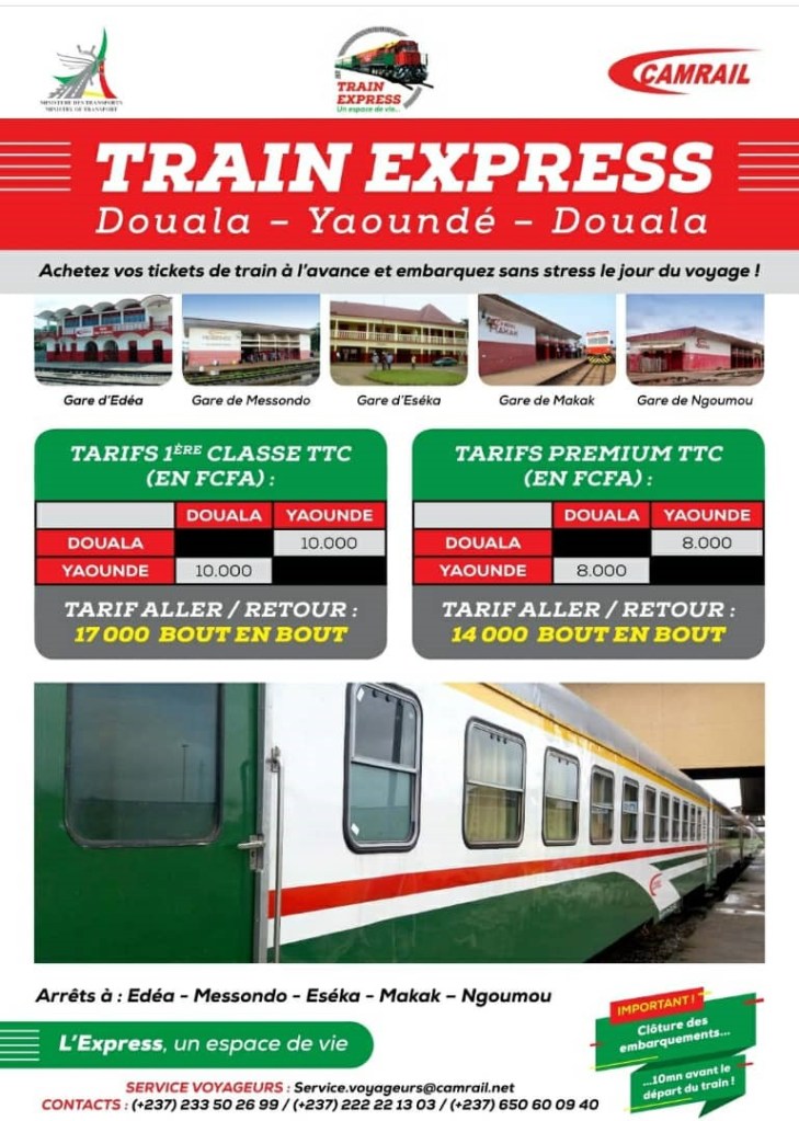 Information from Camrail indicated that the Express train is a palliative solution implemented by the Government within the framework of rail investment projects which have made it possible to rehabilitate more than 200 km of track (Batchenga-Ka’a, Douala and Yaoundé entrances). Renewal projects for nearly 500 km of railway lines are being studied with the support of Cameroon’s multilateral partners.