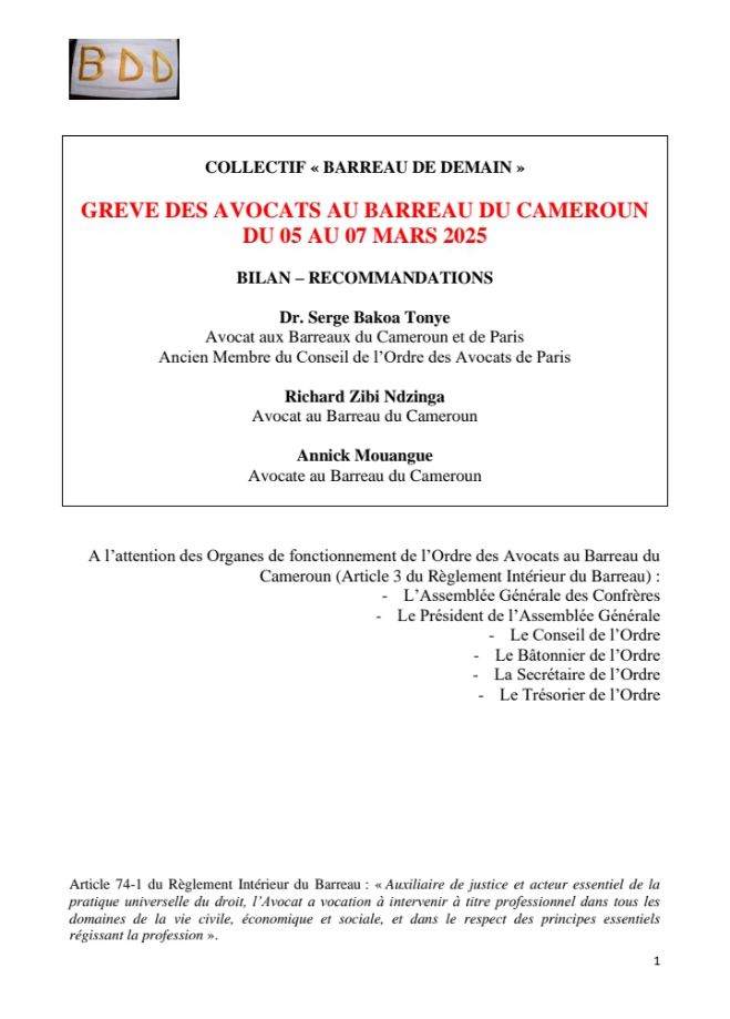 However,the strike’s origins trace back to March 3, 2025 , when the President of the Cameroon Bar Association issued a press release outlining the decision to:Initiate legal proceedings against law enforcement officers responsible for violence against lawyers,Suspend the wearing of court robes and prohibit attendance at courts for three days, from March 5 to 7, 2025, across the entire country.The “Bar of Tomorrow” collective, an organization formed over three years ago to advance professional practices for lawyers, took the initiative to assess the strike and propose constructive solutions to the ongoing crisis. Their efforts included:Publishing and distributing a “vade-mecum for striking lawyers”in both French and English on March 3, 2025. This guide provided lawyers with essential guidelines for conduct during the strike and communication strategies for engaging with clients and other stakeholders,Establishing a dedicated hotline to offer advice and support to lawyers throughout the strike period,Inviting lawyers to provide feedbackon the strike’s execution, their personal experiences, and the reactions of their various contacts.Meanwhile,Serge Bakoa, a Doctor of Laws, Attorney at both the Paris and Cameroon Bars, and former member of the Paris Bar Council, offered his perspective on the strike’s key takeaways:”What we take away is that in a context where our country faces major challenges—major economic challenges, major social and sociological challenges—the role of the lawyer is a driving force for our emergence. For this reason, our authorities and lawyers must sit down together to decide, in co-construction, how to build this country.” He further emphasized, “in the medium term, we have major reforms underway, notably the reform of the 1990 organic law, which is currently in draft form in the National Assembly. This is an opportunity for us to raise our various issues.”In light of these insights, the Bar has put forth several recommendations for improving the quality of justice in Cameroon, categorized by their proposed timeframe: Emphasis on dialogue between lawyers and public authorities, Focus on crucial legal issues including a comprehensive review and rewriting of the penal code and Advocating for a broad consultation aimed at overhauling the entire justice system.By fostering continuous dialogue, enacting meaningful legislative reforms, and ultimately holding comprehensive discussions on the future of justice, Cameroon can pave the way for a more effective, equitable, and respected legal system.