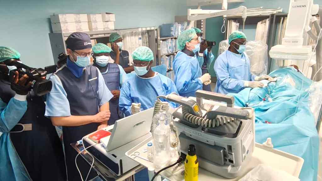 The Douala General Hospital is making significant strides in new cardiology technology. One of its latest innovations is the ability to perform leadless pacemaker implantations. This was achieved on Thursday, March 26, when specialists from the Cameroon Cardiology Society and a visiting experts met to install leadless pacemakers. The procedure is designed to improve outcomes for patients living with certain rhythm disorders.This came on the heals of the Cameroonian Society of cardiology congress that took place in Douala from the 26- 27 of March. The congress was placed under the theme “sudden death” . Cardiology teams emphasized that abnormal heart rhythms particularly conditions that cause the heart to beat too slowly can lead to fainting, loss of consciousness, and, in severe cases, sudden death. According to clinicians, early detection and timely intervention can prevent complications, and modern pacemaker technology plays a key role in this effort.Explaining the difference in plain terms, Nicolas Lesbros technical engineer at Abbott from France described how traditional pacemakers function through electrical impulses delivered to the heart via a lead (wire). In contrast, leadless pacemakers are implanted directly inside the heart as a small capsule, eliminating the need for a lead that runs through veins.Meanwhile Professor Anasthase Dzude cardiologist specialise in cardiac rhythm disorder at the Douala General Hospital explained that traditional systems can involve concerns such as infection and thrombosis (blood clot risks), while leadless devices reduce these risks by removing the lead component.He also pointed the longevity as another benefit: traditional pacemakers are typically expected to function for about 10 to 12 years, while leadless systems may last roughly 15 to 20 years, sometimes longer meaning fewer replacement procedures over a patient’s lifetime.Prof. Anasthase Dzude reiterated that patients often experience noticeable improvement soon after implantation. He said that people who arrived extremely fatigued due to slow heart rates may recover energy within hours once the device begins supporting normal heart rhythm.He noted that infection related complications are a major concern in lead-based systems and that leadless technology is intended to reduce the likelihood of these serious events.