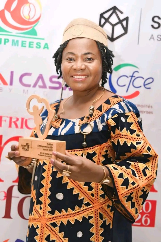The first edition of the golden international award has taken place in Douala. This was during the all African Women Entrepreneurship and Association Forum that took place on March 21 which rewarded women and youths in different categories. One of the rewards that stood out was that of Sylvie Jacqueline Ndongmo, International President of the Women’s International League for Peace and Freedom (WILPF).The award, presented by Lead’Her Africa, recognizes madam Sylvie Jacqueline Ndongmo’s dedication to peace, women’s rights, and leadership.The award recognized the efforts of a women-led initiative behind a peacebuilding model that helped prevent and respond to electoral violence. The Golden international Entrepreneurship Award 2026, celebrated women and youth for their work in different fields, particularly in maintaining peace during Cameroon’s electoral process. In her acceptance speech, madam Sylvie Jacqueline Ndogmo dedicated the honor to victims of conflict and violence worldwide, calling for intensified efforts to promote peace and equality She further explained that one of their recent activity that won the award was the monitoring room that her organisation put it place during the October 12 presidential election in Cameroon. She said the approach was both practical and fast-acting, built around an “early warning and monitoring room” system. The mechanism, she disclosed, enabled women and youth to play an active role in preventing violence, receiving alerts, validating reports, and working with authorities to ensure timely responses.She said the initiative mobilized 100 monitors across 41 communities. Through hotline lines and other contacts, the monitoring team received large numbers of alerts during the election period, including reports of threats, property destruction, and outbreaks of violence.A key feature of the system, she said, was the ability to transform incoming information into action quickly. Alerts collected from the field were received by operational teams, checked for reliability, and then transferred to an analysis room where experts assessed the information and proposed appropriate responses. A final response or decision room coordinated action with relevant institutions.She Added that the mechanism did not only reduce escalation during tense moments, it also helped authorities and partners act more rapidly. She sounded off that without such tools, the situation could have deteriorated further.She revealed that the “early warning and monitoring room” also highlighted that violence was not limited to streets, polling stations, or communities.